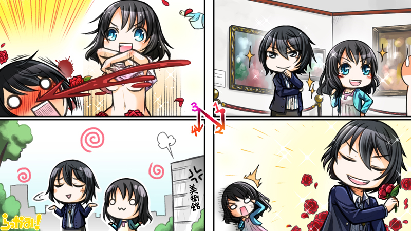 「美術品よりも私達のほうが美しい!」な雰囲気。見やすいように漫画風なあっさり塗りになってます。