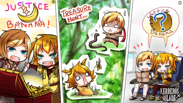 ジャスティスバナナを探し求めてジャングルヘ!なイラスト。
