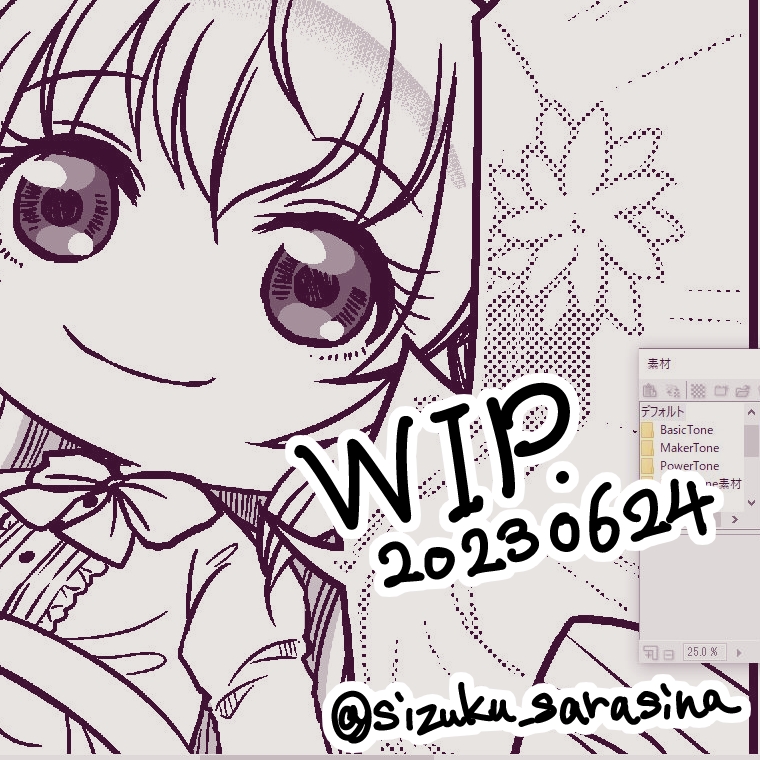 漫画進捗グレースケールでトーン貼り中。そろそろ完成するかも。
