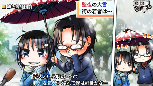 聖夜の街中でインタビューされるカップル。さらっと言う彼女に赤面する彼氏。