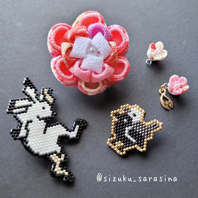 今週は気分転換にビーズステッチやつまみ細工をしてました。